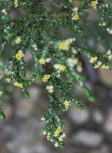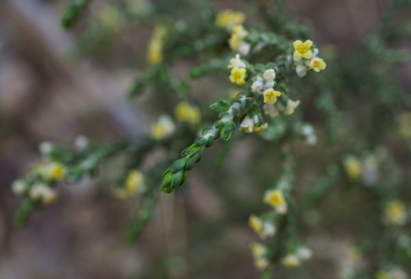 (Thymelaea tartonraira ssp. valentina, família de les timelàcies) Arbust llenyós, amb branques abundants intrincades, amb cicatrius prominents d’antigues fulles en les branques. Les fulles tenen forma d’espàtula, que superen els 2 mm d’amplària, cobertes de pèls curts i suaus al tacte com la seda i disposades al llarg de les tiges principals. De març a maig apareixen les flors, grogues i amb nombroses fulles especialitzades en la base. Creix sobre substrats calcaris, de vegades també sobre guixos, formant part de matollars i timonedes seques i assolellades des del nivell del mar fins als 1200 m d’altitud. Endemisme d’àrea restringida al sudest de la Península Ibèrica, amb poblacions a València i Alacant, on és més freqüent; apareix de manera més puntual en les provincies perifèriques. A Benidorm, la podem trobar a la serra Gelada.