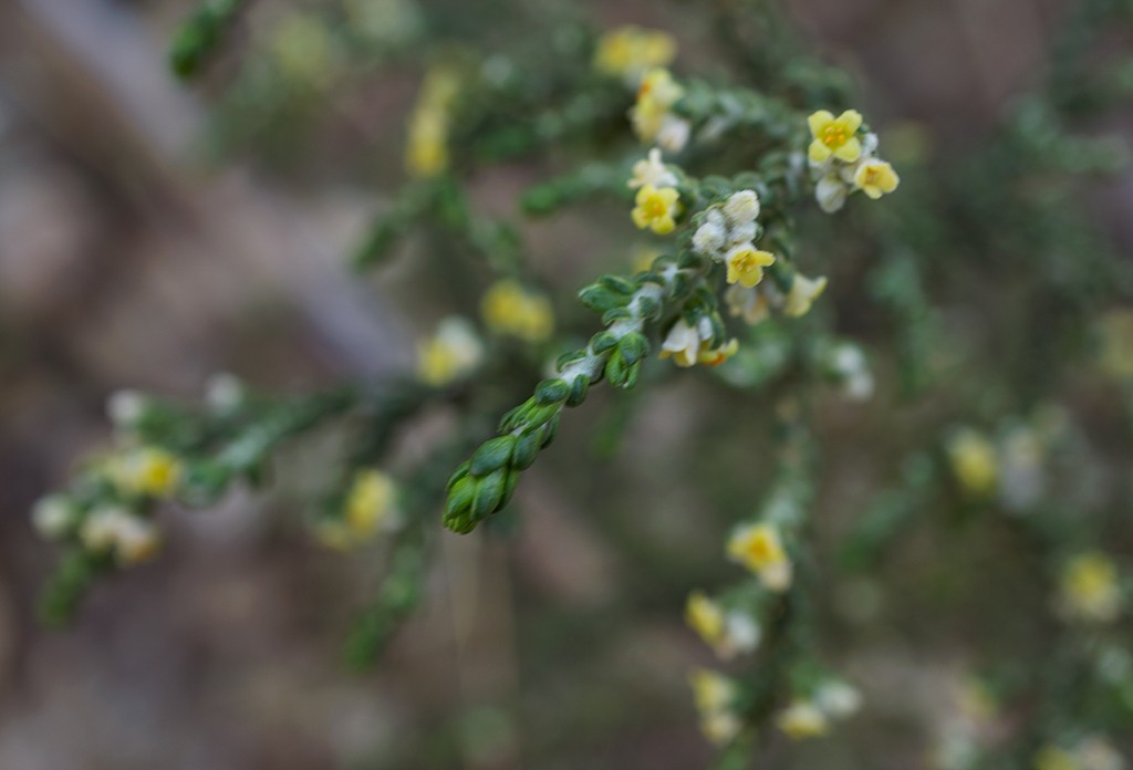(Thymelaea tartonraira ssp. valentina, família de les timelàcies) Arbust llenyós, amb branques abundants intrincades, amb cicatrius prominents d’antigues fulles en les branques. Les fulles tenen forma d’espàtula, que superen els 2 mm d’amplària, cobertes de pèls curts i suaus al tacte com la seda i disposades al llarg de les tiges principals. De març a maig apareixen les flors, grogues i amb nombroses fulles especialitzades en la base. Creix sobre substrats calcaris, de vegades també sobre guixos, formant part de matollars i timonedes seques i assolellades des del nivell del mar fins als 1200 m d’altitud. Endemisme d’àrea restringida al sudest de la Península Ibèrica, amb poblacions a València i Alacant, on és més freqüent; apareix de manera més puntual en les provincies perifèriques. A Benidorm, la podem trobar a la serra Gelada.