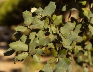 (Quercus ilex ssp. rotundifolia, família de les fagàcies) És un arbre ben corpulent que quan és vell presenta un tronc gruixut, d’escorça fosca i clivellada, i una espessa capçada ampla i arrodonida, capaç de produir ombra densa. Les fulles són dentades o fins i tot serrades i un poc espinoses, coriàcies i completament opaques, cobertes per damunt d’una pilositat menuda de color gris blavós. Les flors masculines es disposen en aments penjants de color daurat i les femenines, en grups de dos o tres, estan envoltades per un involucre. El fruit és una bellota, de sabor més agradable que la del coscoll. Els carrascars, estesos per tot l’àmbit mediterrani, han estat molt explotats per obtenir carbó fins al començament del segle XX; després s’han tallat per a obtindre terres de conreu i quan aquestes s’han abandonat han sigut repoblades per pins; açò fa que hui tinguem molt poques representacions del carrascar típic mediterrani. La fusta de la carrasca, compacta, molt dura i resistent, era usada per a fer mànecs, eines i rodes de carro. Dins la ciutat també podem trobar aquest arbre plantat com a ornamental al parc de l’Aigüera, on n’hi ha més de 50 exemplars.