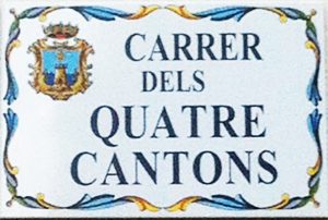 El carrer dels Quatre Cantons es troba situat en paral·lel a la mar tot tallant els carrers que baixen del Castell.