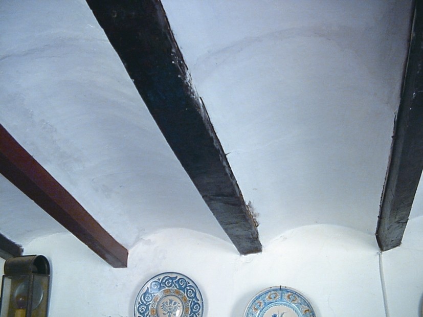Lloc inaccessible, golfes. Part superior d’una casa a sota de la teulada.