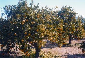(Citrus sinensis, família de les rutàcies) Arbre perennifoli originari d’Àsia pot arribar a una alçària d’uns 5 o 6 m, però rarament se’ls deixa assolir-la quan es cultiva a gran escala. Les branques solen ser anguloses i espinoses amb l’escorça grisenca o verdosa en les més joves. Pel que fa a les fulles, enteres, dures, lluents i glabres (sense pèls) té a cada costat del rabet o pecíol dues aletes formant com un cor. Els fruits són baies amb la paret del fruit carnosa i la part sucosa o sarcocarp originada a partir de l’epidermis de l’endocarp o part més interior de la paret del fruit. El seu interior sol estar dividit en un nombre indeterminat de gallons, generalment al voltant de deu.