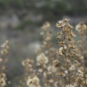 (Phagnalon saxatile, família de les compostes o asteràcies) Mateta llenyosa, ramificada i amb les tiges erectes i cobertes d’un toment fi de color blanc. Les fulles són estretament linears, amb els marges caragolats o revoluts cap al revers, on també presenten un dens toment blanquinós. Les floretes, com en totes les compostes, són grogues i sense llengüeta, i s’agrupen en capítols, que en aquest cas són solitaris i menuts, de 69 mm, ovoides (forma d’ou) i amb les bràctees involucrals més externes (cap a la base del capítol) reflexes o com corbades cap a fora. És una planta pròpia de llocs rocosos, costers asolellats on apareix freqüentment junt amb l’albellatge (Hyparrhenia sinaica).